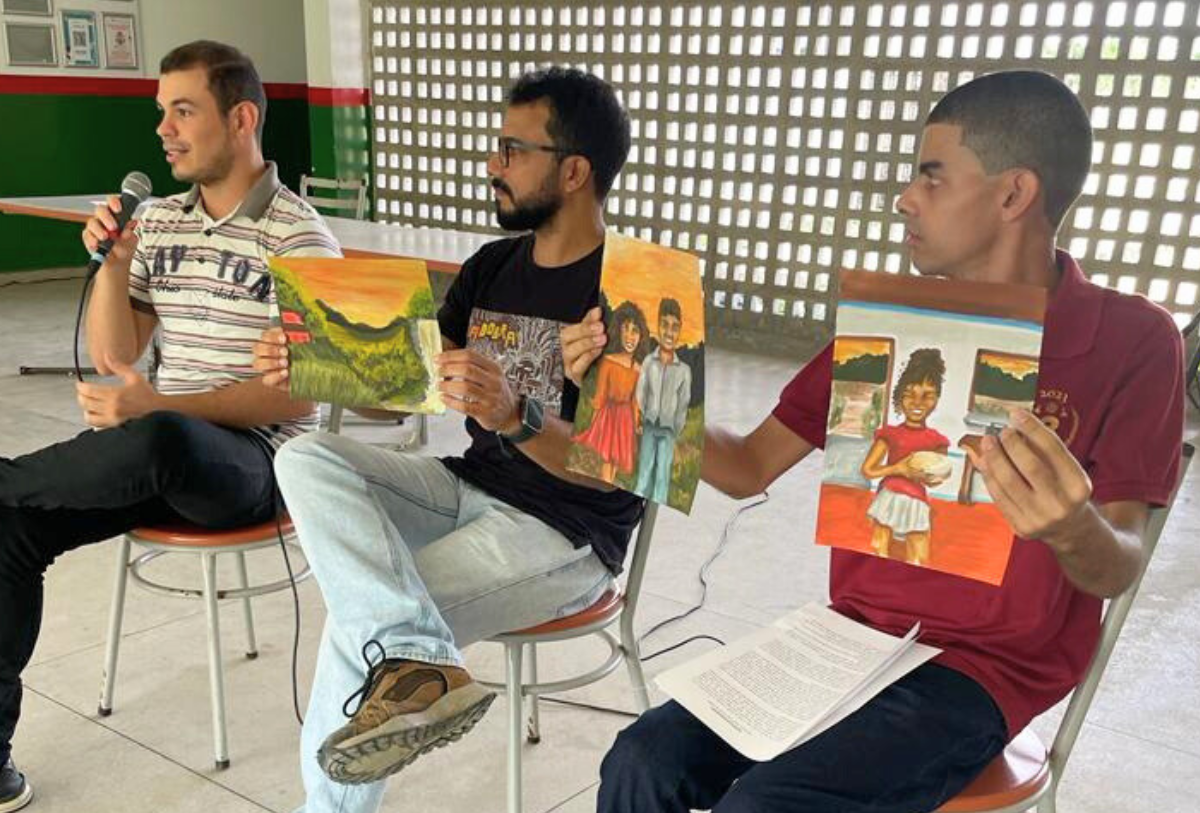 Os professores Agrumario Pimentel e Marcil Abreu com o aluno Israel Lucas.