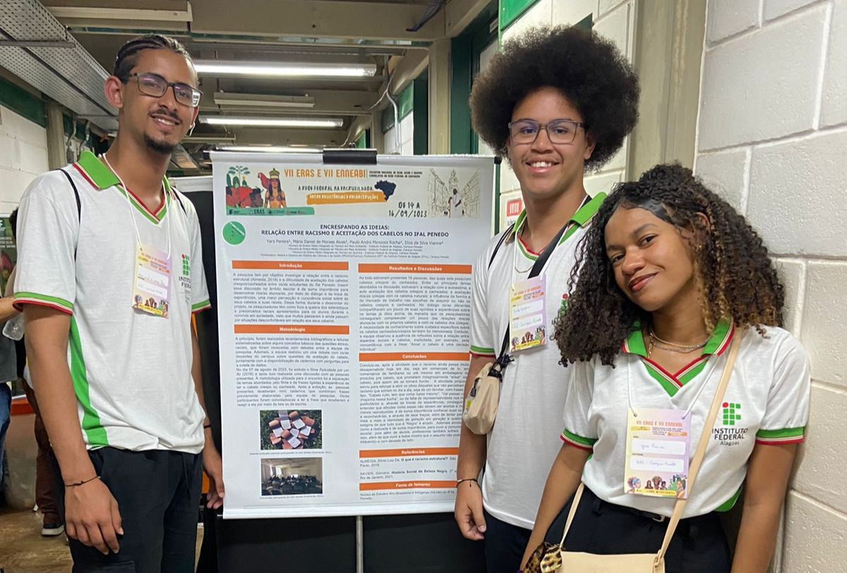 Estudantes levaram a experiência do projeto de pesquisa “Encrespando as ideias: a relação entre racismo e a dificuldade de aceitação dos cabelos no Ifal Penedo”.