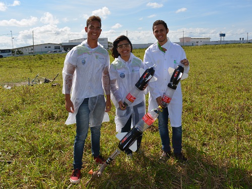 Equipe selecionada para a VIII Jornada de Foguetes: Israel Vicente dos Santos, Eduarda dos Santos Ribeiro e João Vitor Romão de Castro.