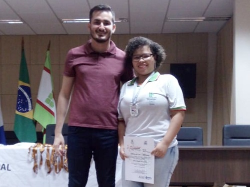 Anniele Sterfany Santos Leite, medalhista de prata, com o professor José Diego Soares.