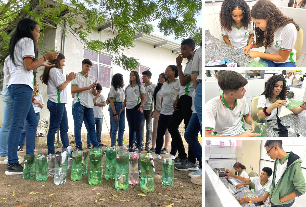 Estudantes montam horta autoirrigável com materiais recicláveis no Ifal Penedo
