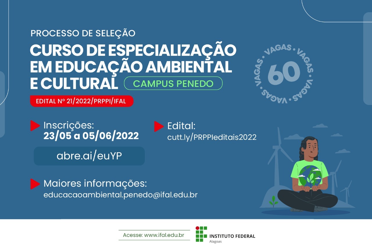 Ifal abre seleção para pós em Educação Ambiental e Cultural no Campus Penedo