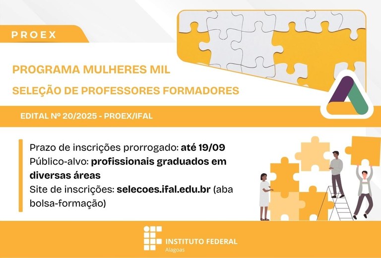 Inscrições on-line foram prorrogadas até o dia 19/09; seleção visa atender o Programa Mulheres Mil