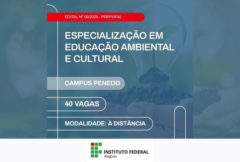 Inscrições abertas para pós-graduação em Educação Ambiental e Cultural do Ifal Penedo