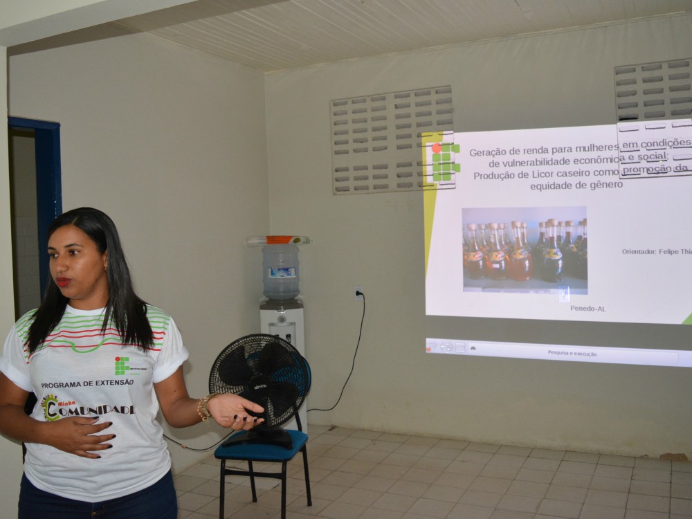 A bolsista Ana Paula Santos apresentou a ação voltada para a geração de renda que tem como público-alvo mulheres em condições de vulnerabilidade econômica e social.
