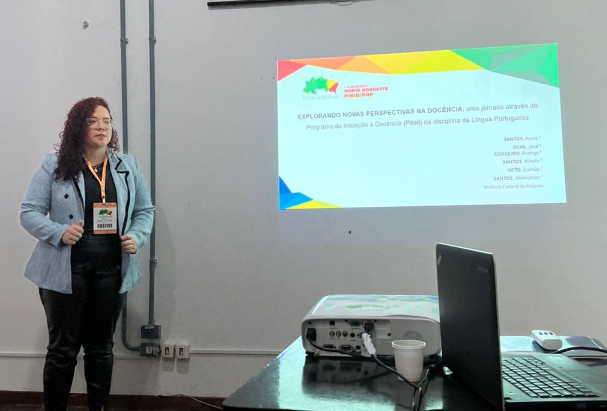 Apresentação do trabalho ´sobre o Pibid em Língua Português foi apresentado pela aluna Aurea Santos.