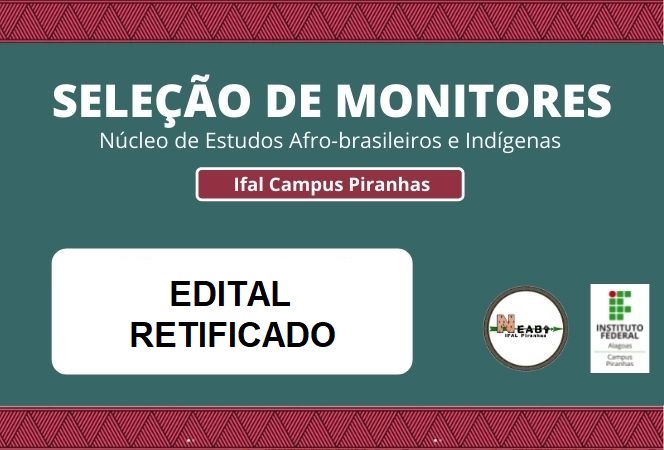 Edital de seleção de monitores do Neabi Campus Piranhas é retificado