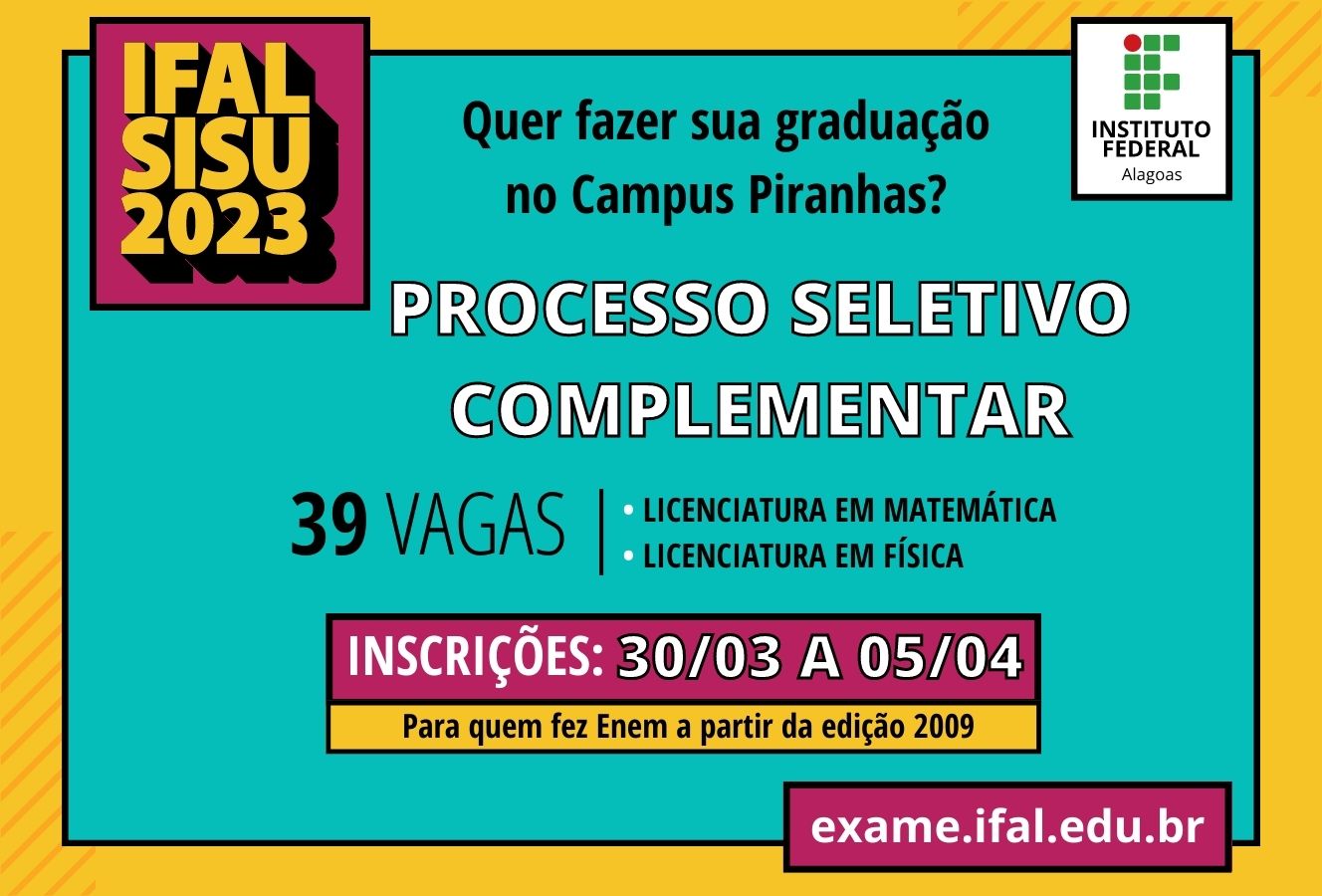Ifal Piranhas abre 39 vagas em novo processo seletivo para cursos superiores
