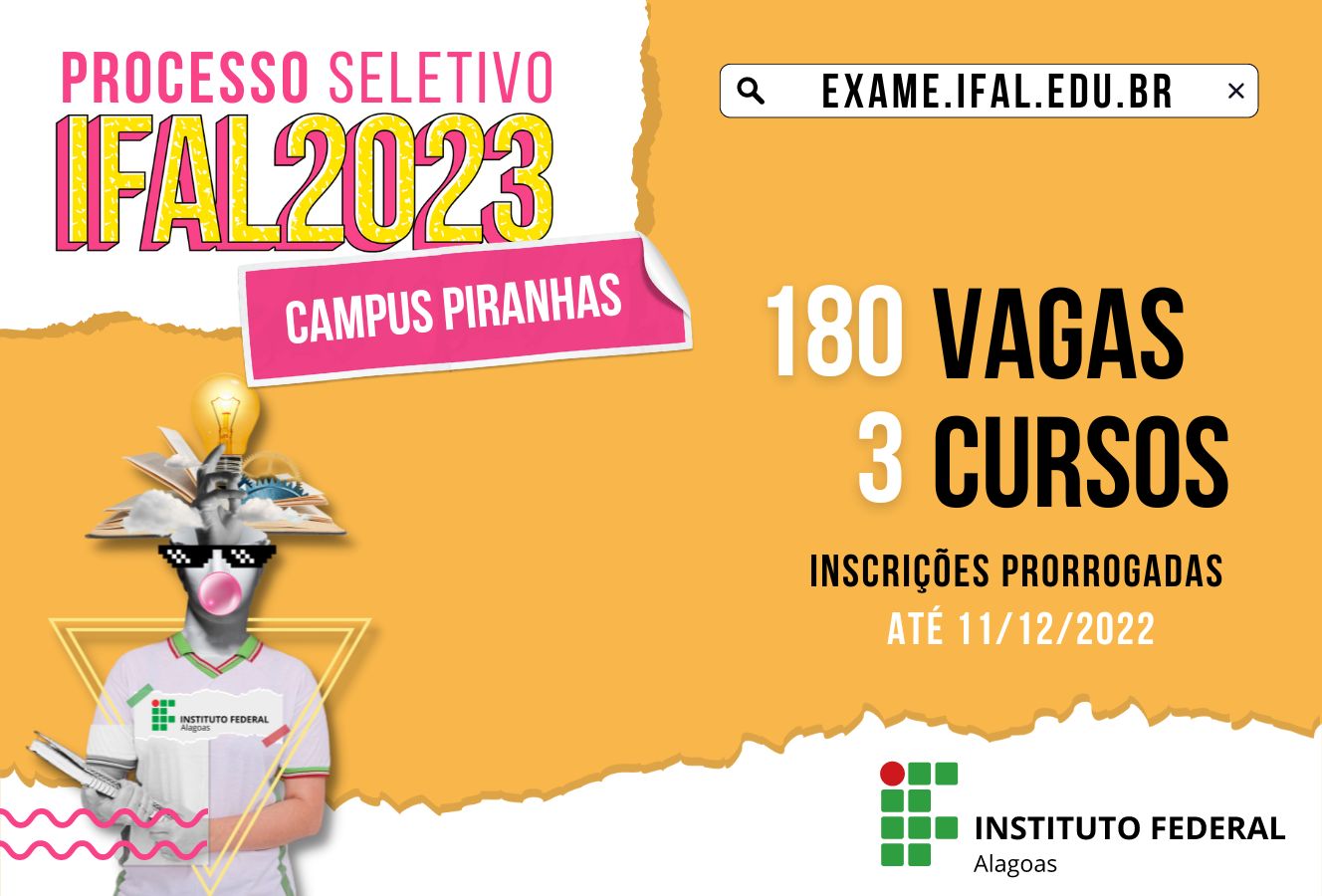Inscrições prorrogadas em processo seletivo para estudar no Ifal Piranhas