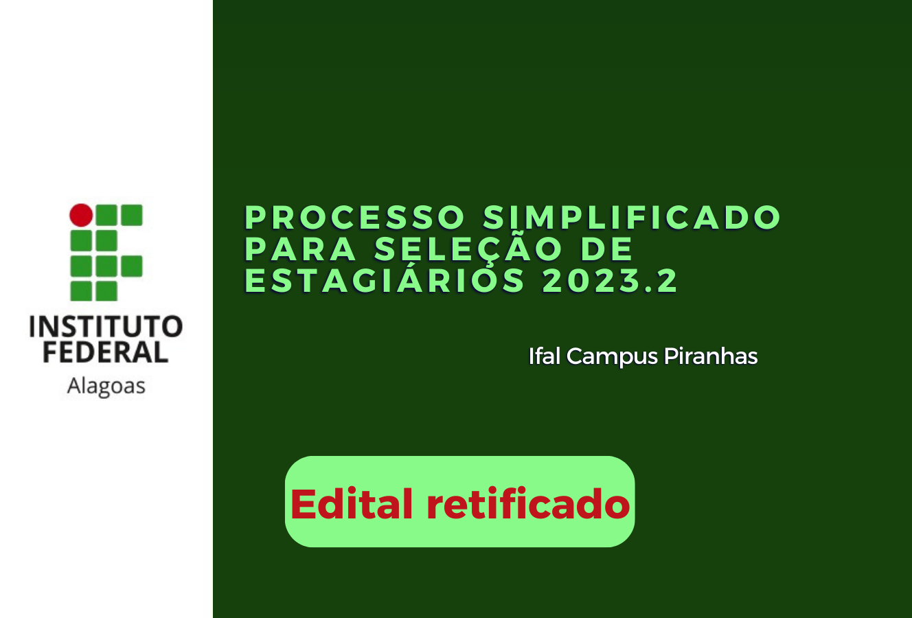 Retificado edital de seleção de estagiários para o Campus Piranhas