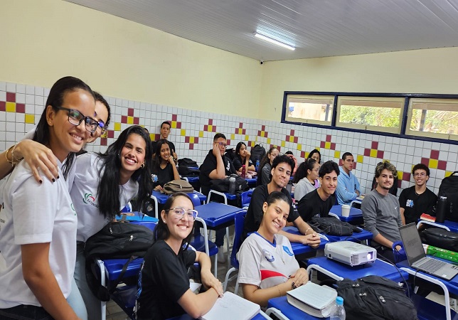 alunos do 5º ano do Ensino Fundamental da Escola Industrial Luiggi Bauducco, da cidade de Rio Largo e estudantes do Ifal integrantes do GALC