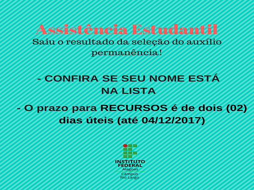 Resultado da seleção do auxílio permanência - Campus Rio largo