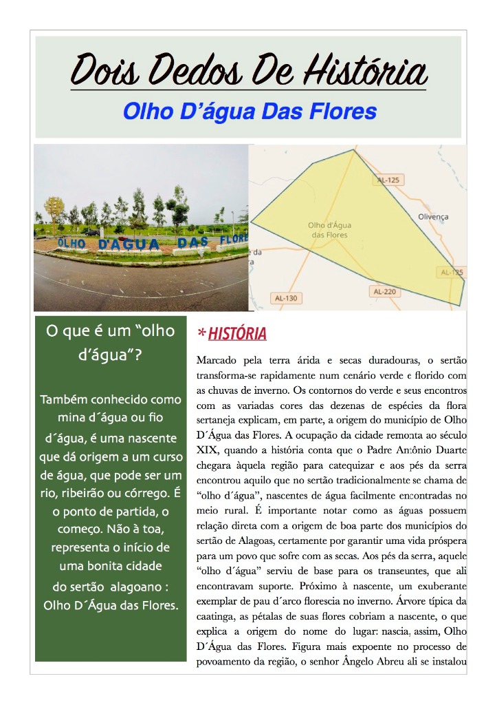 "Dois Dedos de História" nos leva à Olho D'Água das Flores.