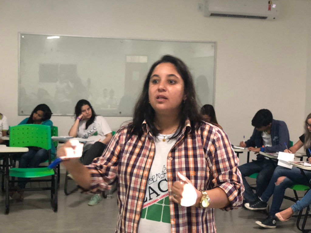 Professora Anny Barros em ação na oficina "Produção de Artigos Científicos"