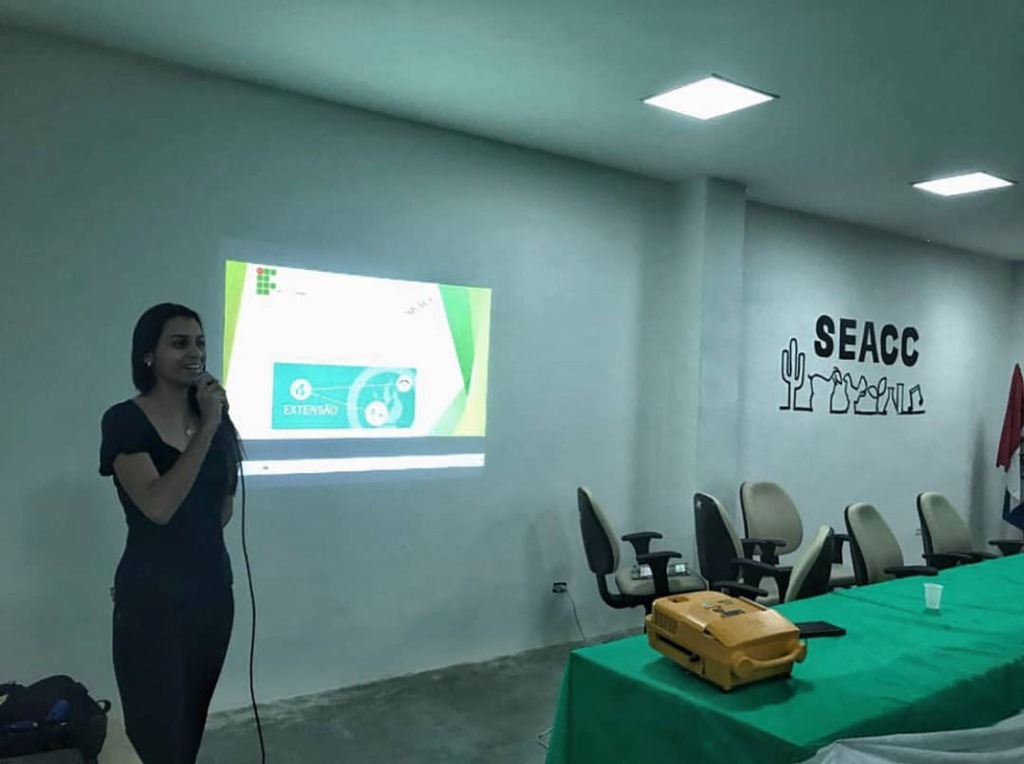 Olívia Lins, aluna, participa do encerramento do evento como palestrante