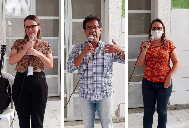 Deisy Bonfim (coordenadora de gestão de pessoas), Osvaldo Ferro (professor) e Rosiene Araújo (técnica-administrativa) tiveram momento de falas no encontro
