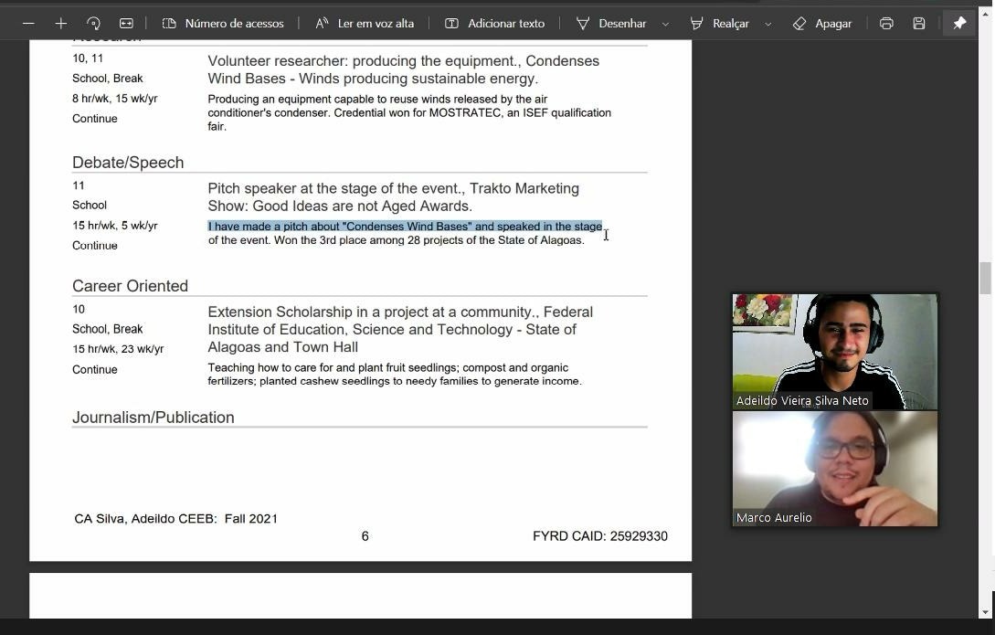 Adeildo em reunião com seu orientador acadêmico do EducationUSA, Marco Aurélio