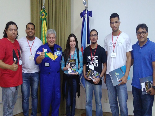 Professores e alunos com Marcos Pontes, primeiro astronauta brasileiro a ir para o espaço