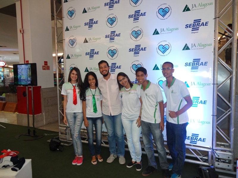 Júnior Venâncio, representante da Ong, com os alunos miniempresários do Ifal