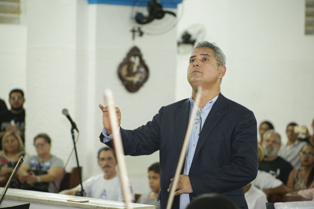 Maestro Almir Medeiros durante a primeira apresentação da união dos grupos do Ifal e Ufal