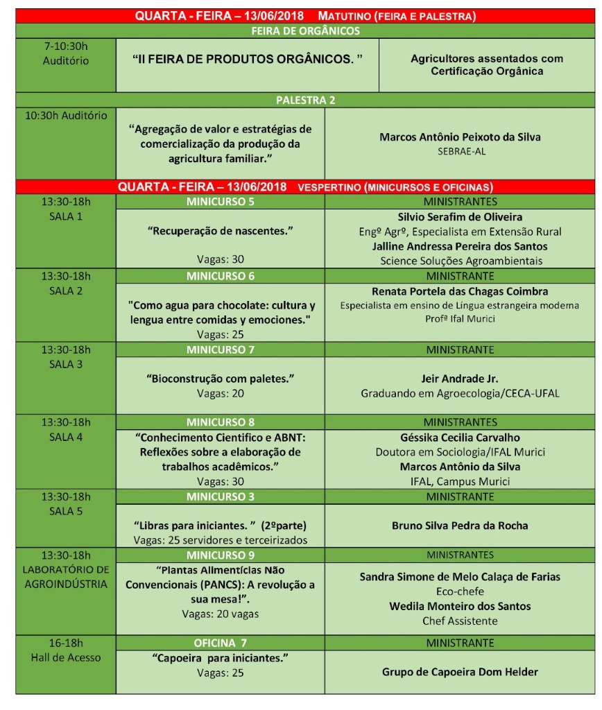 Campus Murici realiza a V Semana de Agroecologia e Agroindústria