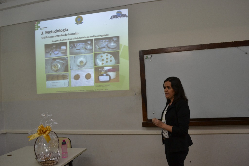 Eveline Moura, aluna do curso de Tecnologia em Alimentos, apresentou pesquisa que resultou em um biscoito feito com farinha de resíduos de processamento de polpa de goiaba