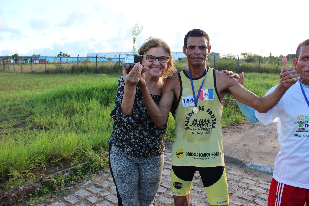 Prefeita Eliza Alves entrega troféu ao vencedor da corrida, Cristiano Gregório