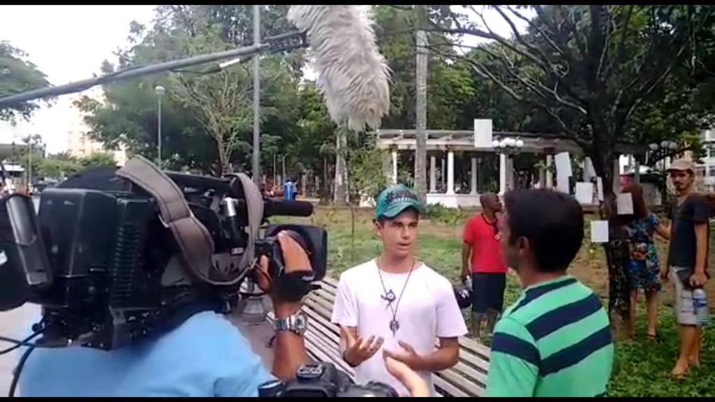 Aluno concedendo entrevista à Rede Bahia de Televisão