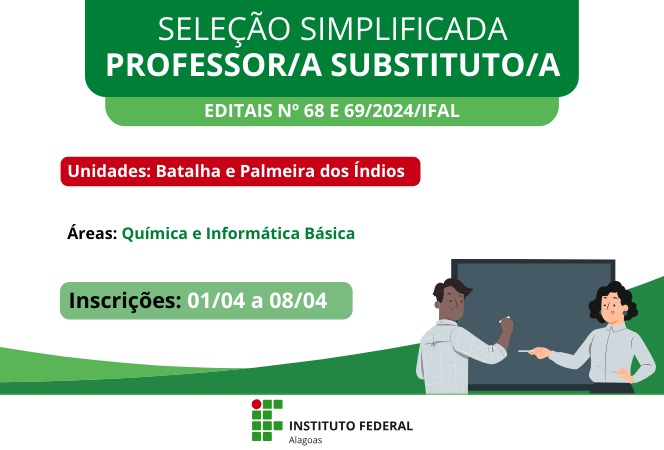 Divulgado editais de professor substituto dos campi Batalha e Palmeira dos Índios