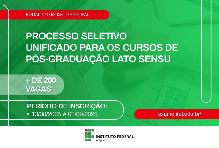 Edital do Ifal oferta 285 vagas para especializações em cinco municípios de Alagoas