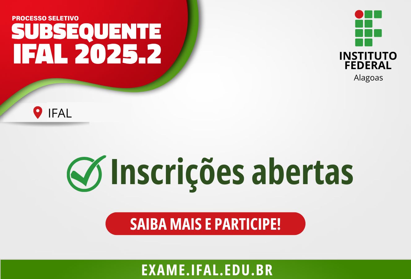 Ifal abre inscrições para cursos técnicos subsequentes ao ensino médio