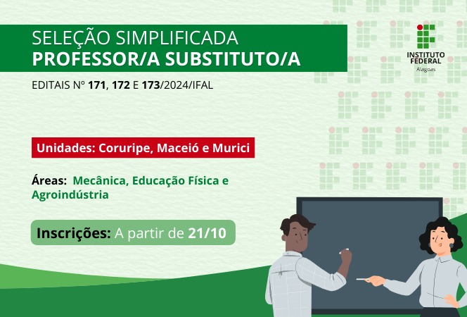 Ifal abre inscrições para seleção simplificada de professores nos campi Maceió, Coruripe e Murici
