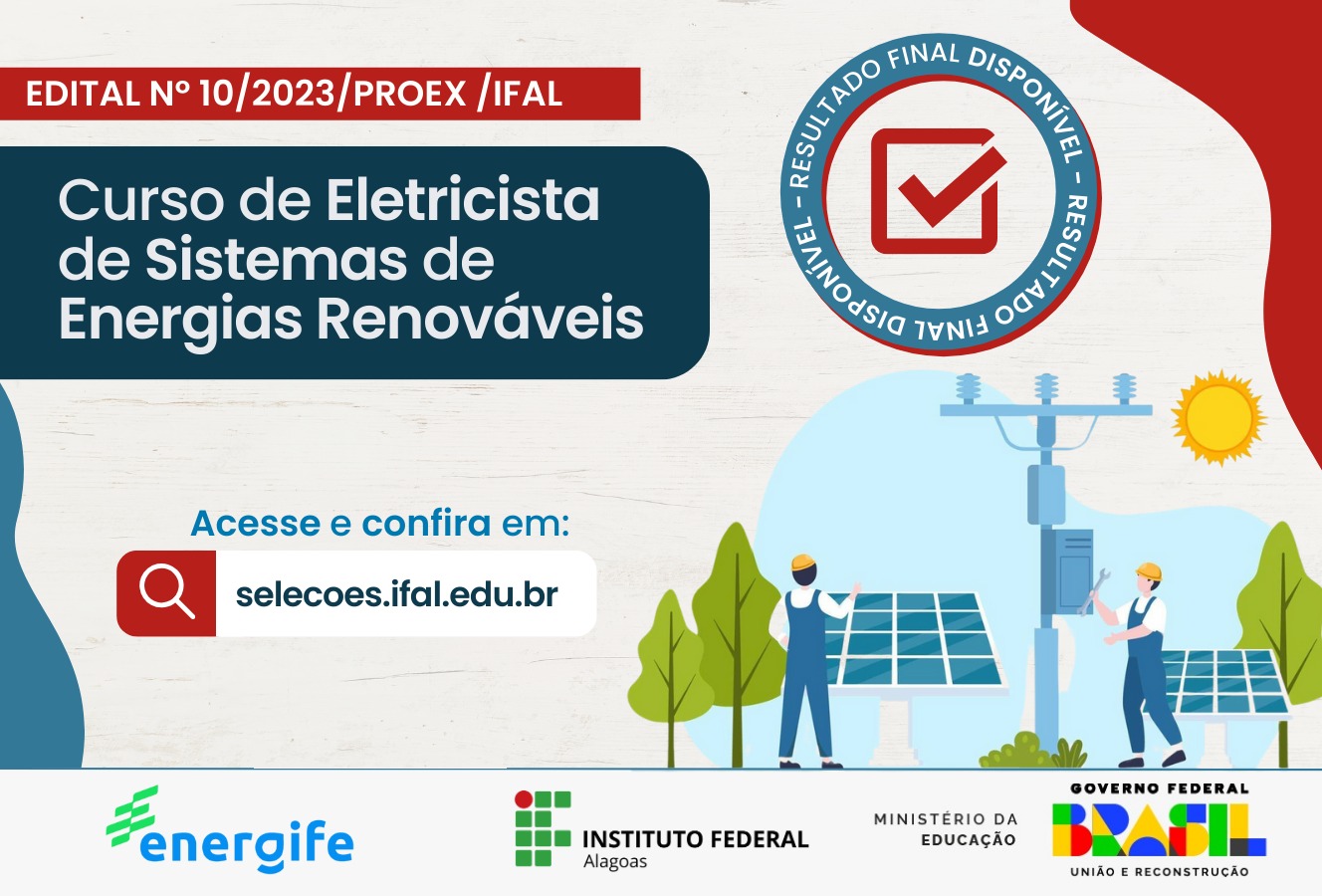 Ifal divulga resultado do curso de Eletricista de Sistemas de Energias Renováveis
