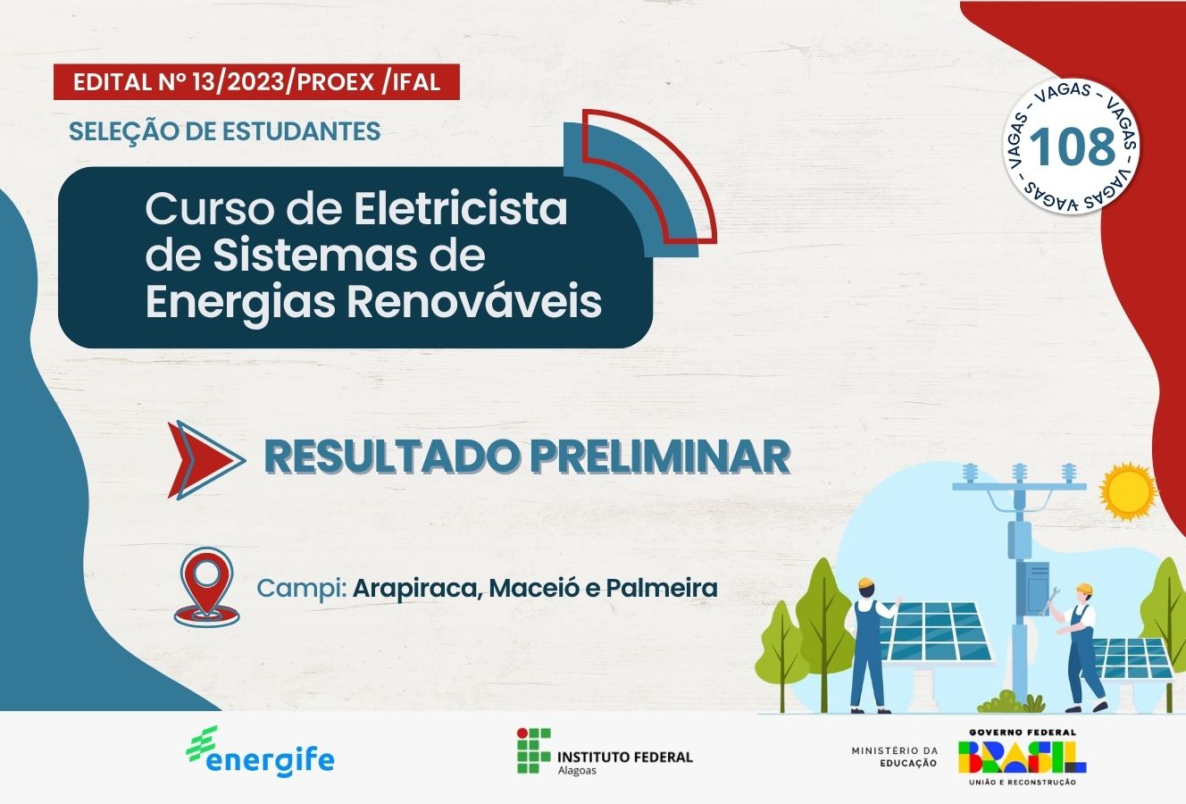 Ifal divulga resultado preliminar do curso de Eletricista de Sistemas de Energias Renováveis