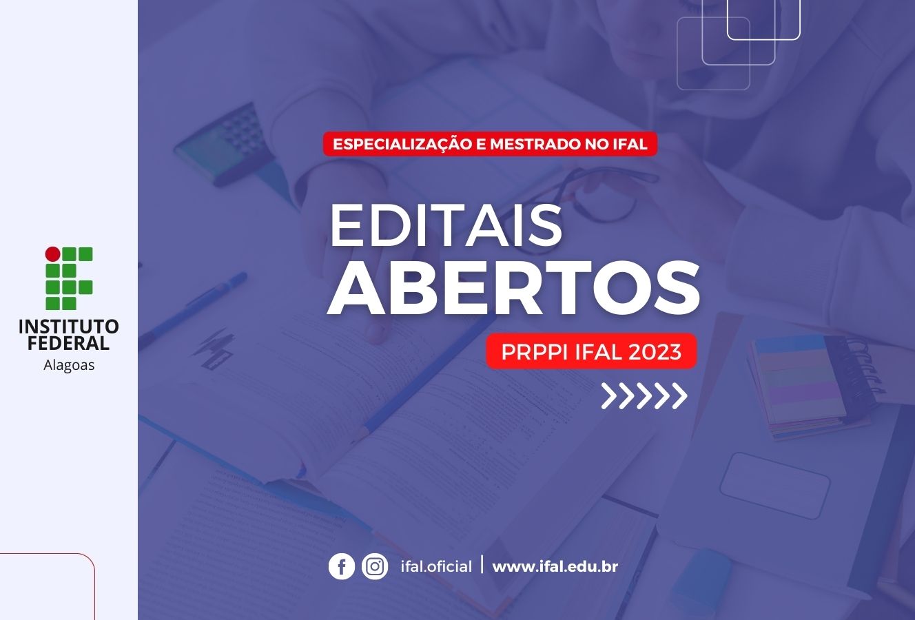 Editais de especialização e mestrado profissional do Ifal