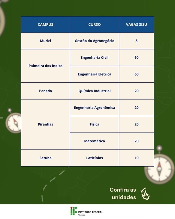 Ifal oferta 752 vagas em 23 cursos no Sisu 2026