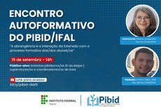 O Instituto Federal de Alagoas (Ifal) inicia na próxima segunda-feira (15) uma série de palestras voltadas aos participantes do Programa Institucional de Bolsas de Iniciação à Docência (Pibid). Intitulada “Encontro autoformativo do Pibid/Ifal”, a atividade contará com dois momentos de troca de saberes, realizados por meio do Canal oficial do Ifal no Youtube.