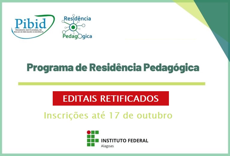 Inscrições nos editais de Residência Pedagógica do Ifal podem ser feitas até 17/10