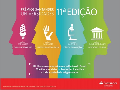 Inscrição para 11ª edição dos Prêmios Santander Universidades pode ser feita até 17 de setembro