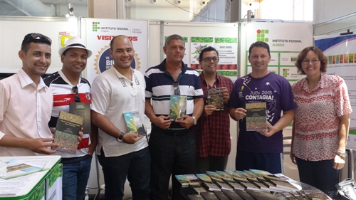 Docentes do Campus Maragogi durante sessão de autógrafos no estande do Ifal