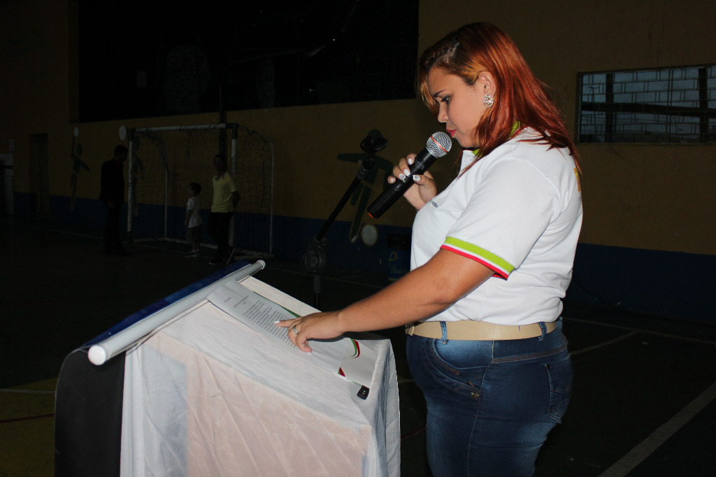 Oradora da turma de agente de alimentação escolar, Simone Dias