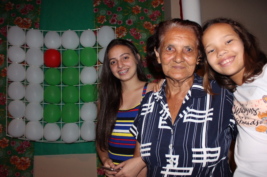 Anny, sua bisavó Marili e sua prima Eduarda na abertura da Mostra