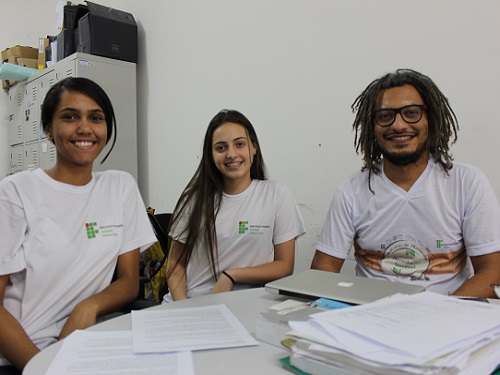 Professor Cosme Rogério, orientador do projeto, comemorou com as discentes a aprovação do trabalho em evento no exterior