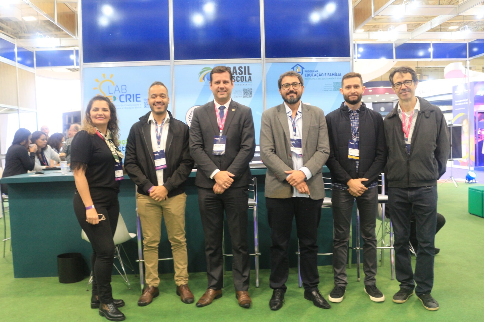 Da direita para a esquerda: Joedna Hubner, assessora do Núcleo de Pesquisa e Inovação da Secretaria de Educação Profissional e Tecnológica (Setec) do MEC; Thiago Araújo Silva de Oliveira, também do Instituto Federal de Alagoas (IFAL); Tomás Dias Sant´Ana, Secretário de Educação Profissional e Tecnológica do Ministério da Educação; Alan Pedro da Silva, vice-diretor do NEES; Mauro Magalhães, da Universidade Federal da Bahia; e Alisson Werner Arruda, do Ifal