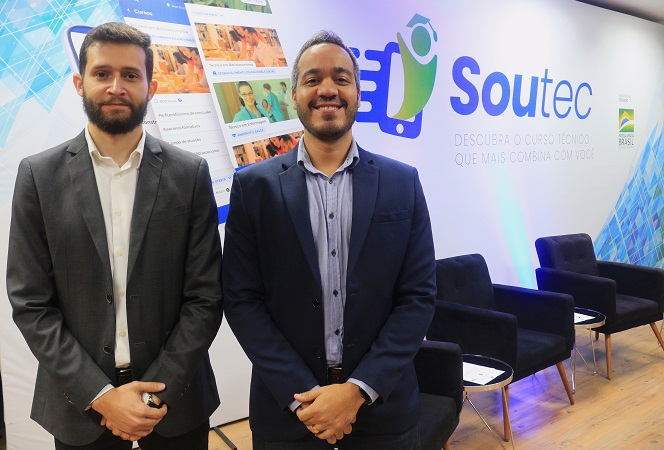 Professores Alisson (à esquerda) e Thiago, do Ifal, participaram da cerimônia oficial de lançamento do aplicativo Soutec em Brasília, no dia 3 de junho