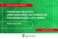 A Pró-reitoria de Pesquisa, Pós-graduação e Inovação (PRPPI) divulgou, nesta segunda-feira (22), o resultado final do Edital nº 09/2025, referente ao Processo Seletivo Unificado para os cursos de Pós-Graduação Lato Sensu. Confira aqui!