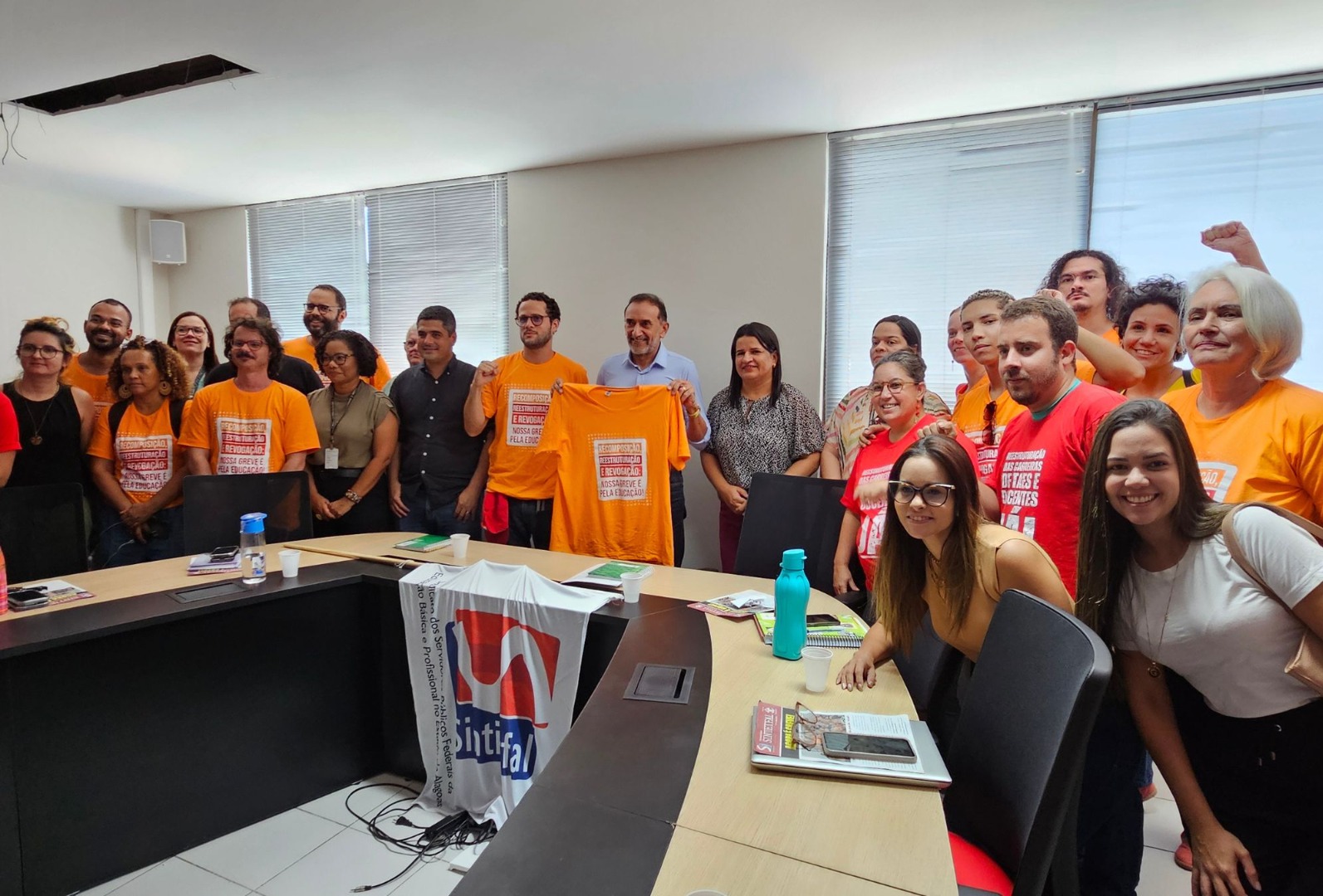 Reitor com a camisa do movimento grevista