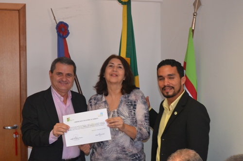 A enfermeira Graças Brasil recebe certificado de honra ao mérito