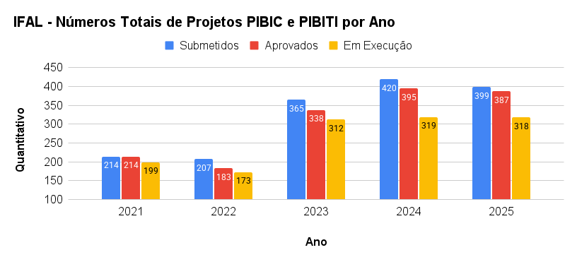 2025 - IFAL - Números Totais de Projetos PIBIC e PIBITI por Ano