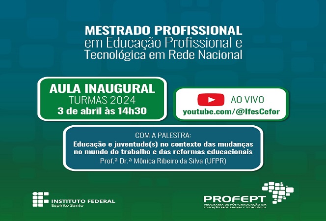 Aula inaugural nacional do ProfEPT será no dia 3 de abril